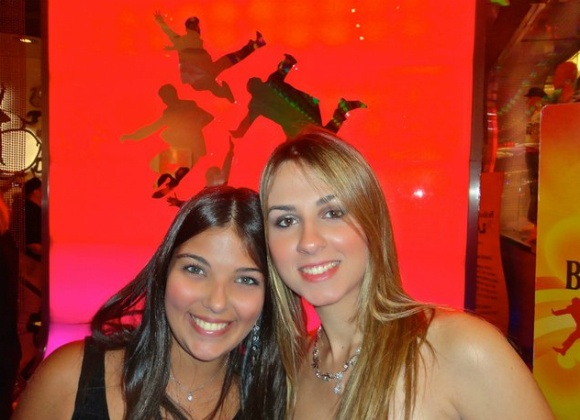 Raquel e Eu um pouquinho antes do espetáculo começar! A tela com os Beatles ao fundo ficava mudando de cor e demoramos séculos para conseguir uma foto decente…