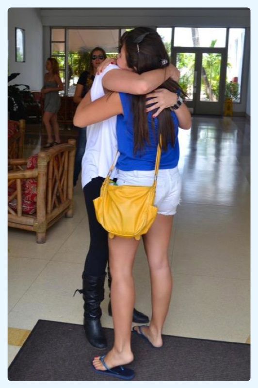 No dia seguinte, enquanto tomávamos café da manhã, liguei pro meu pai pra saber da localização da minha irmã e se ela já havia chegado nos EUA. Ela e meu pai tem rádio Nextel e conseguiam se falar entre si enquanto eu falava com meu pai lá no Brasil pelo Facebook ou pelo celular, pois eu tinha um plano que liga pra qualquer telefone fixo do mundo de graça. Assim que falei com ele, descobri que ela estava me esperando no hotel!!! Saí correndo do hotel vizinho, onde sempre tomávamos café da manhã e fui encontrar minha sister! Foi a maioooor choradeira, muitos abraços, maior emoção. Mesmo nos falando sempre pela internet, não tem nada como um abraço de quem a gente ama e não vê há tanto tempo!!! Fiquei muito feliz!!! Família é família 🙂