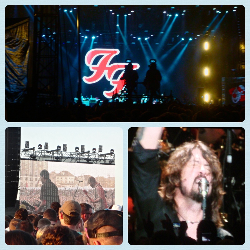 Chegando lá, 10 minutos depois ouvimos um barulhão e muitas luzes vindo do palco principal. De repente, dois Fs ENORMES aparecem no fundo e Dave Grohl entra arrasando!!! Só lembro de sair pulando que nem doida no meio no povo, tentando chegar o mais perto possível do palco de uma forma em que eu conseguisse enxergar pelo menos o telão, pois minha altura nunca me favorece em momentos de empolgação como esse!