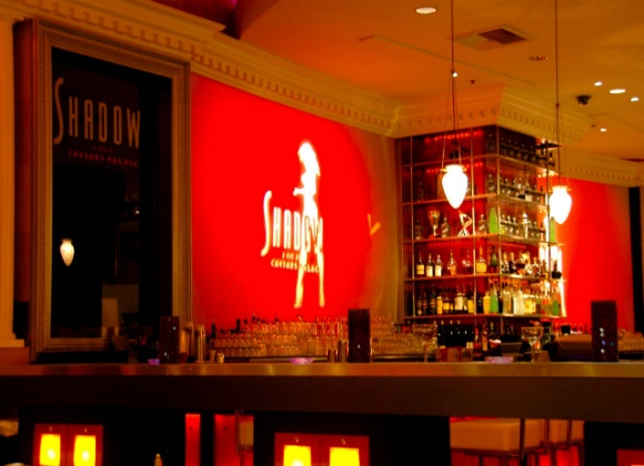 Shadow Bar, no Caesars Palace. Essa silhueta no slogan do bar é uma mulher de VERDADE que dança atrás da tela a noite inteira. Muito legal!