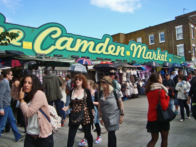 Na sua visita à Londres, um lugar que vai conhecer – com certeza – é Camden Town. Para quem gosta de rock é um prato cheio! Lojas com camisetas de banda, coturnos, botas, sapatos incríveis. O preço está na média, pois é um bairro bem turístico, mas acredito na ideia de ‘quem procura, acha’. Andar por lá e entrar em todas as lojinhas procurando o que você quer é o que eu mais aconselho a fazer. O Camden Market, que é o mercado que fica bem do lado da estação de metrô, é um dos mais baratos por lá, mas é preciso tomar cuidado com a qualidade das roupas. Dá para pechinchar por um preço melhorzinho se você achar algo legal, mas fique esperto pois os casacões e roupas mais carinhas são de qualidade duvidosa.