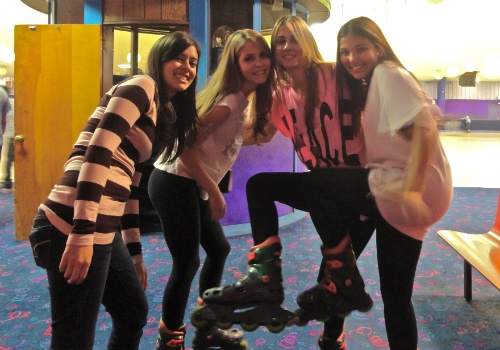 Eu sei que parece um ‘programa de índio’, principalmente se você não sabe patinar, mas mesmo assim recomendo que vocês conheçam esse lugar! Primeiro porque o preço é super acessível: 5 dólares para patinar à vontade e mais 3 dólares para o aluguel dos patins. Você pode escolher entre in-line ou os patins tradicionais mesmo. Bom, eu só sei andar em patins in-line, mas percebi que eu e as minhas amigas brasileiras éramos umas das únicas usando esse tipo! As nossas amigas ‘gringas’ disseram que nunca experimentaram o in-line!!!