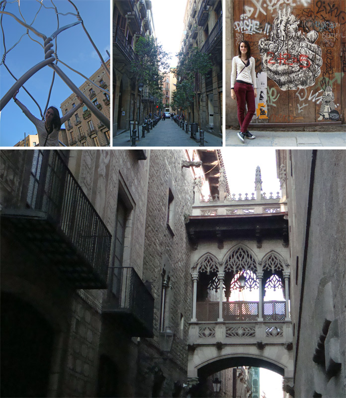 Com certeza uma hora ou outra você vai passar pelo bairro gótico, pois fica bem no centro da cidade e é onde todas as lojas e restaurantes estão. Claro, não tooodas, mas o borburinho está por lá. A arquitetura é maravilhosa e você vai querer ir mais de uma vez! Visitar os restaurantes, comer tapas, tomar cervejas em diferentes bares e fazer comprinhas. Tem coisa mais gostosa?!