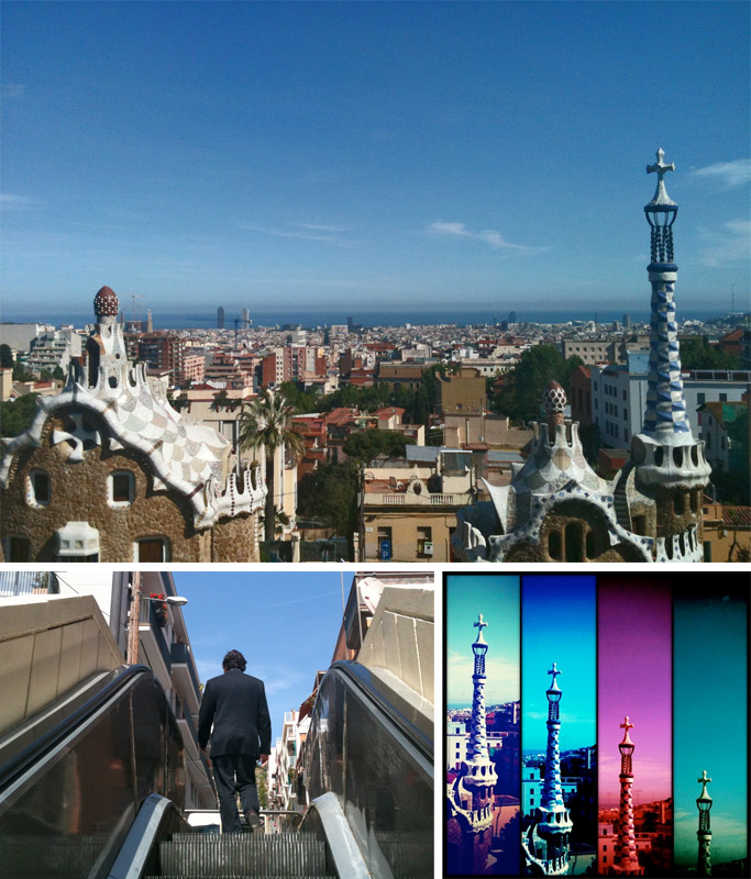 Mais uma das obras loucas e lindas de Gaudí. Bem no alto, com uma vista linda da cidade e uma arquitetura única e peculiar, desenhada pelo gênio. Leve sua câmera e um pouquinho de paciência, pois nos dias bonitos o lugar fica super cheio! E aposto que nos dias feios também, pois é bem turísticão. A paciência vem na hora de pegar um lugarzinho bom para tirar fotos pois as pessoas sempre ficam nos mesmos pontos. Mas eu e minha amiga passamos a tarde lá então deu para pegar uns cantinhos bons. Para chegar lá você tem que subir muuuito, mas ao invés de escadas normais, graças a Deus, eles colocaram escadas rolantes. Acho que foi a primeira vez que andei de escada rolante ao ar livre! hahaha