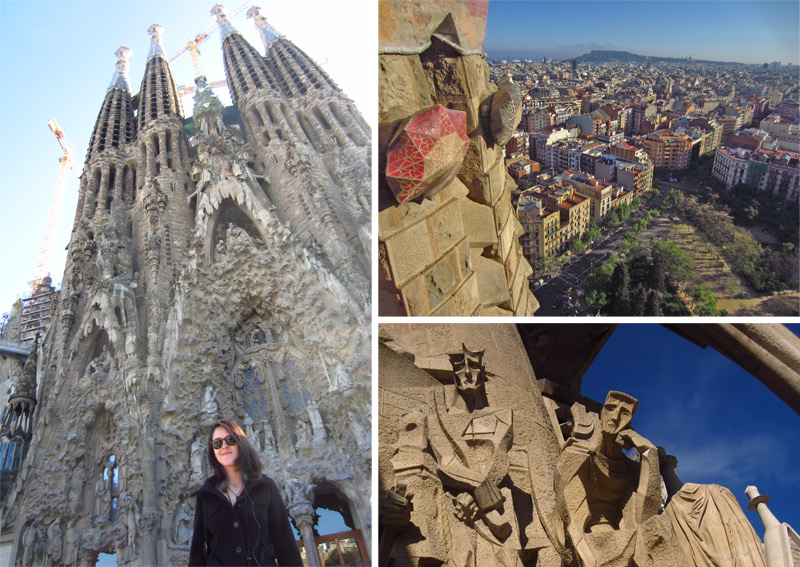 Esse foi o mais caro, mas também um dos que mais valeram a pena. Nunca vi uma catedral tão linda na minha vida! E claro, foi feita por Gaudí, que fez vários dos outros pontos turísticos de Barcelona, e acho que o cara só podia ser louco. Pensou em um milhão de construções inimagináveis, conseguiu fazer e ainda nem terminou, mesmo estando morto. Ele fez estudos para que os futuros arquitetos que iam continuar a sua obra conseguissem entender exatamente o que ele queria. E ainda vai demorar 40 anos para terminar de construir. Dá pra acreditar? Quando passamos perto dela rola até um torcicolo, de tão alta que é. E o tamanho vai triplicar, juro que é impossível de imaginar! Cada lado da catedral conta uma parte da história da vida de Jesus e dentro é a coisa mais linda. A arquitetura consegue fazer parecer que o concreto vira natureza. É lindo e é, com certeza, imperdível! Paguei 17 euros, mas muito bem gastos!