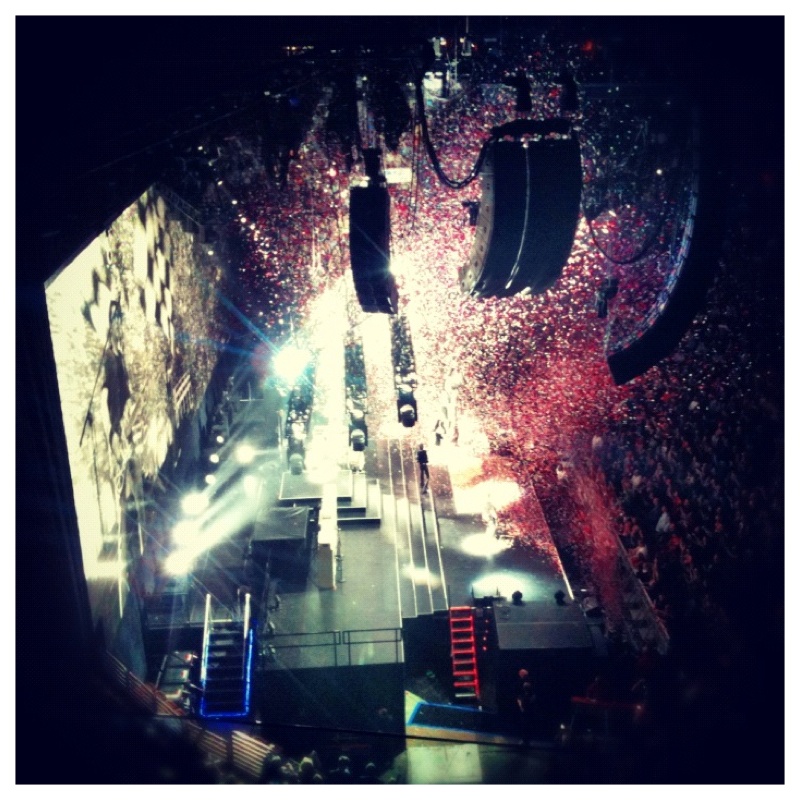 O show aconteceu no Wells Fargo Center, que é o estádio do time de basquete (76ers) e de hóquei (Flyers) da Philadelphia! QUE LINDO! Mal acreditava que eu estava lá!!! A banda de abertura foi sensacional: Kool and the Gang, pena que chegamos um pouco tarde e perdemos o início! É uma banda antigona dona de váááárias músicas famosas que tocam em casamentos, hahaha! Sabem aquela ‘ceeeeelebration time, COME ON!!!’? (vídeo abaixo). Então, é deles!!! Foi demais, super… dançante.